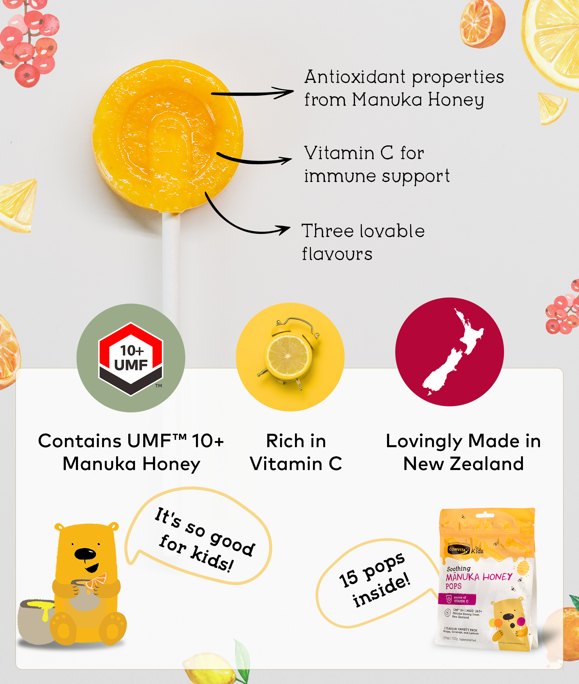 Comvita UMF 10+ Manuka Honey Soothing Pops (15 Pops)