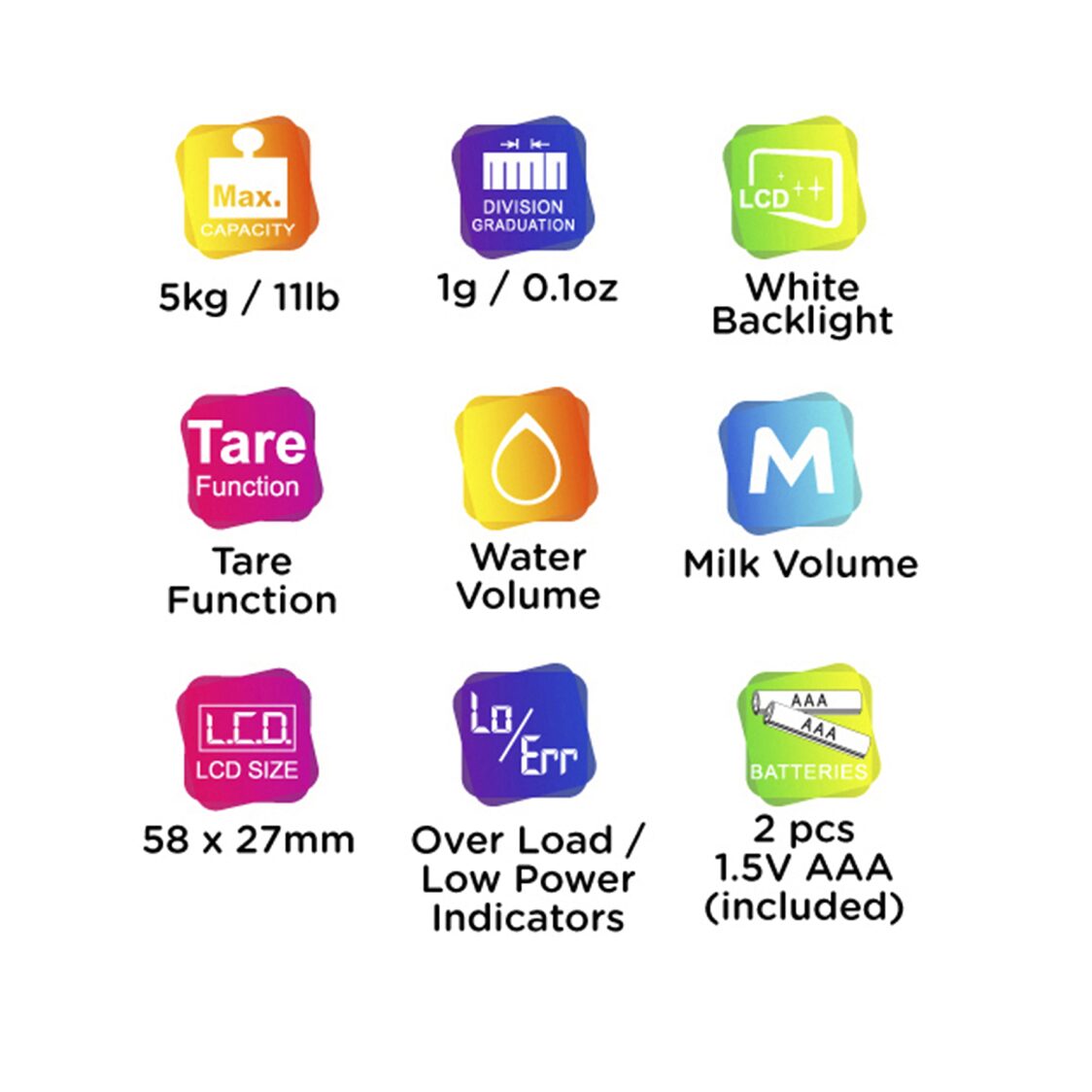 - Max Weight Capacity : 5kg / 5,000g / 11lb