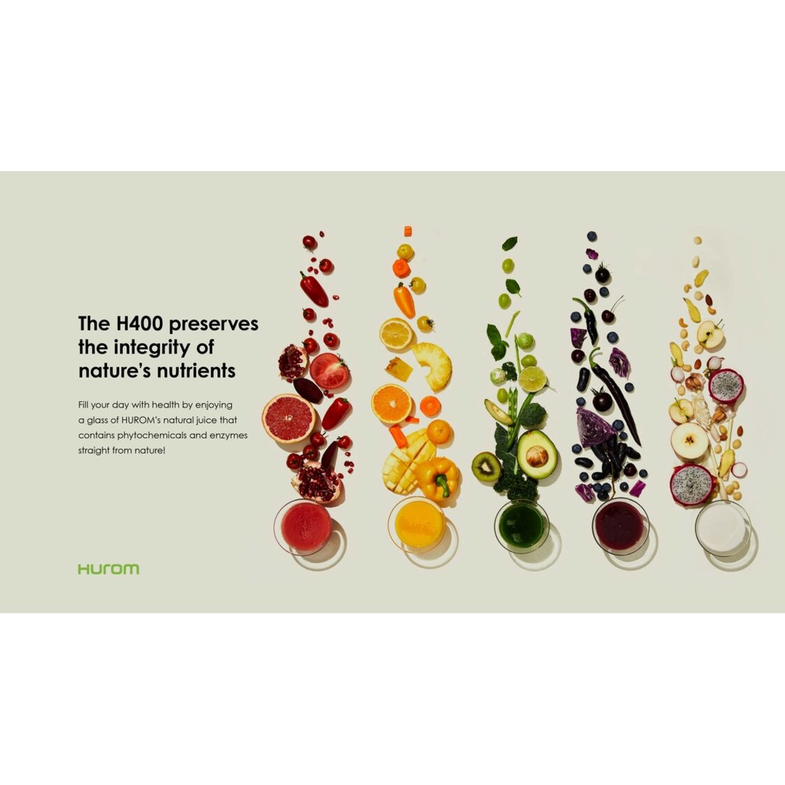- The H400 continues our commitment to design excellence. It features a gauge window on the front of the body which highlights the rich colors of your juice, which also allows you to intuitively monitor how full its chamber is.