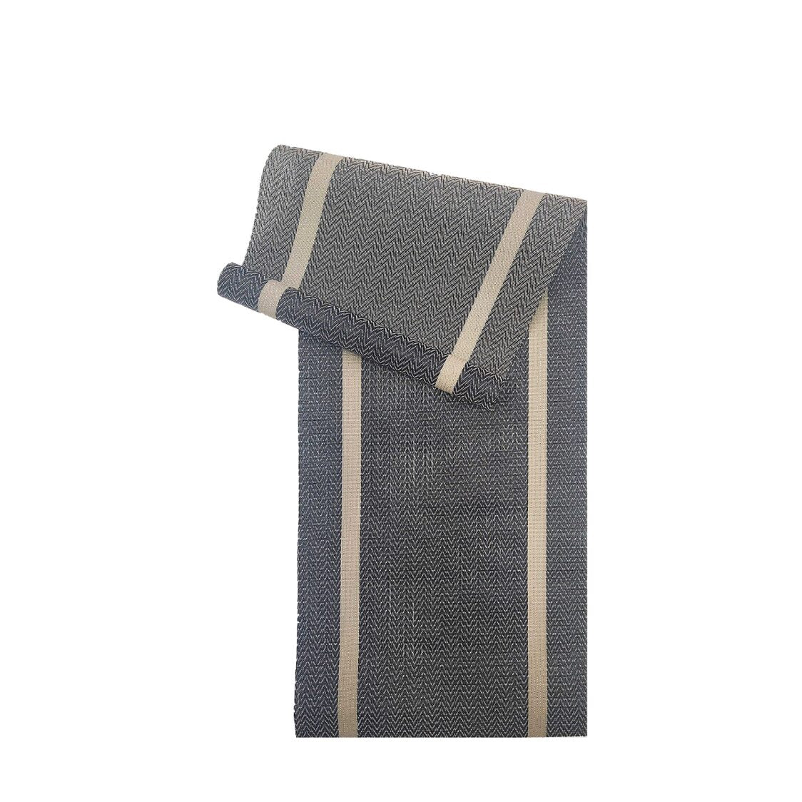 Elevate your table setting with our sophisticated chevron woven design Texilene tablerunner, finished with a subtle shimmer of a lurex border.