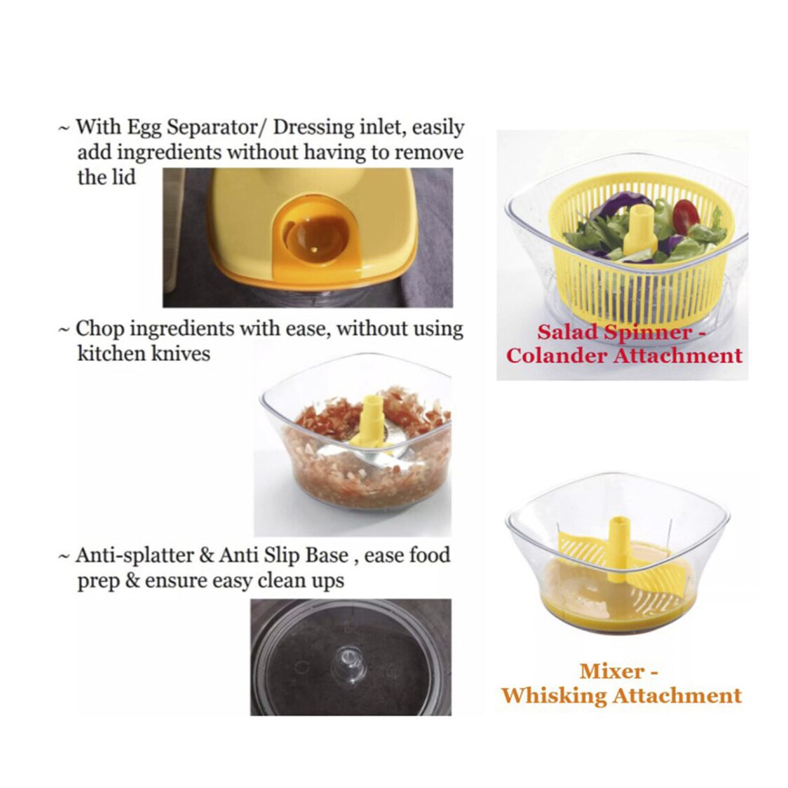 - With Egg Separator/ Dressing inlet, easily add ingredients without having to remove the lid