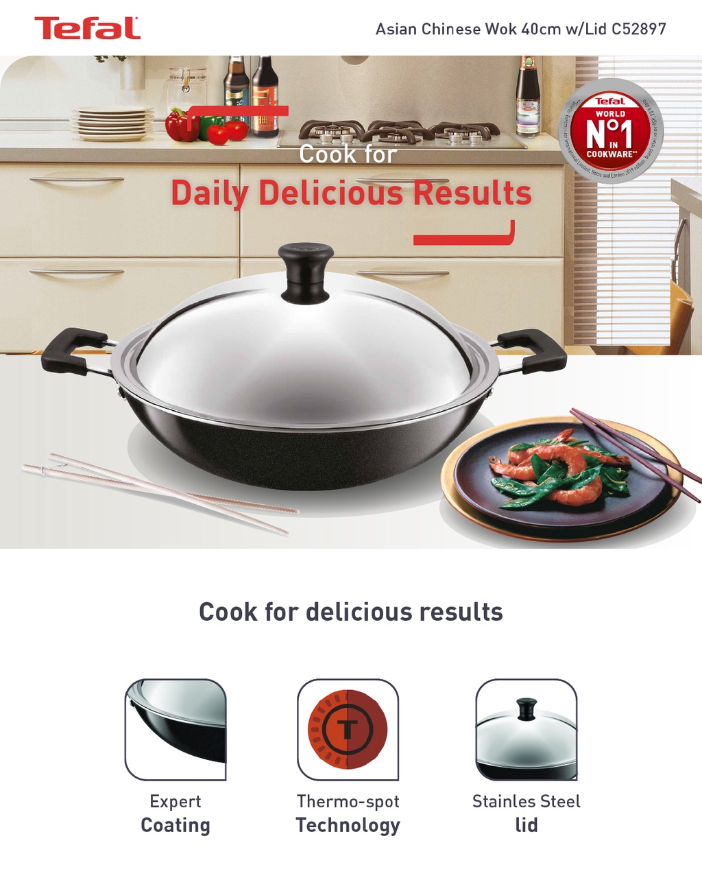 TEFAL Asian Chinese Wok with Stainless Steel Lid