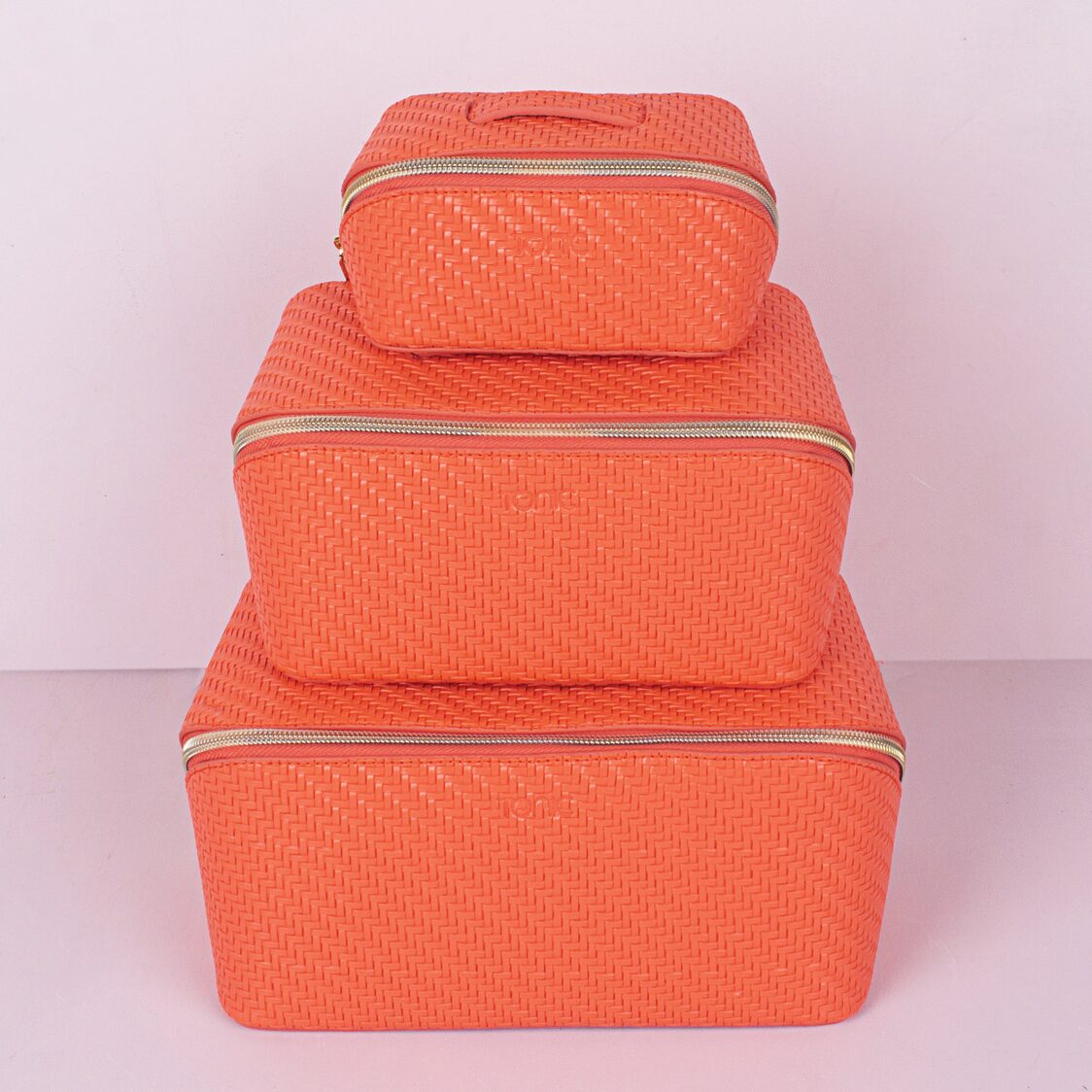 Tonic Herringbone Medium Beauty Bag In Tangerine 44017